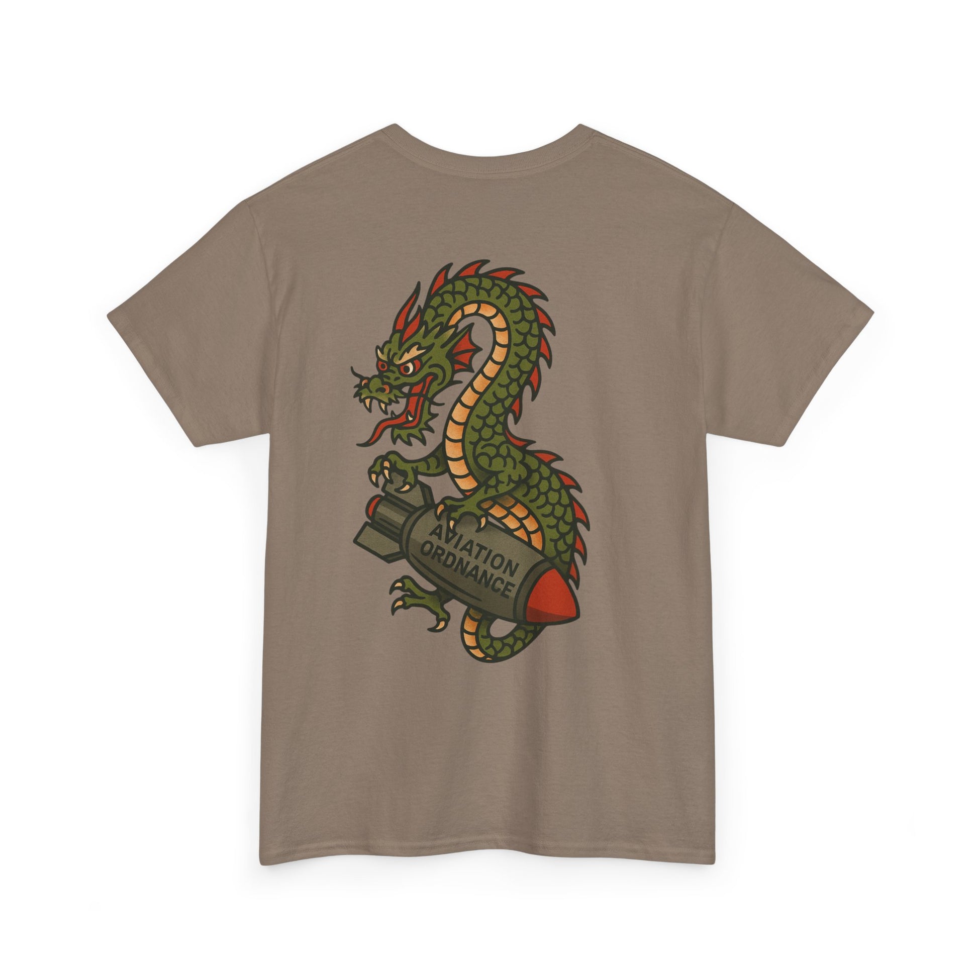 Ancient power meets modern firepower in the Dragon’s Drop Tee. This bold design showcases a fierce, coiled dragon gripping an Aviation Ordnance bomb—ready to rain fire from above. A tribute to the legacy, strength, and strike capability of ordnancemen, this shirt blends Eastern myth with explosive AO pride.
