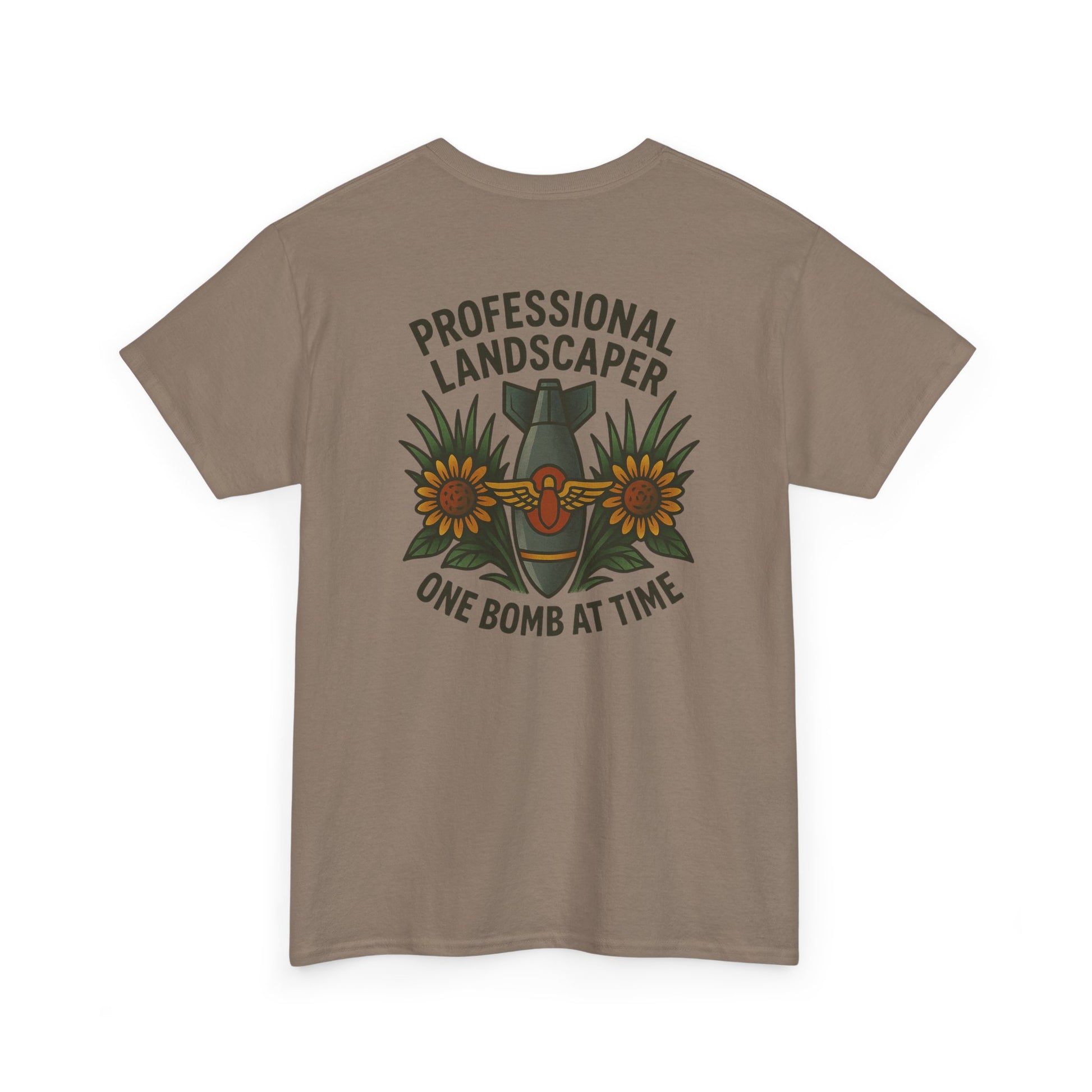 Show off the dark humor and proud grit of Aviation Ordnancemen with the Professional Landscaper tee. This bold design carries the slogan “One Bomb at a Time”, capturing the legacy, precision, and no-nonsense attitude of those who turn the battlefield into fresh terrain.